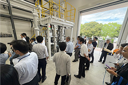 ②炭素回収技術評価センター(都市ガスボイラ、CO2分離回収試験設備を備え、ボイラ排ガスを用いて、各種CO2分離素材の評価を行う施設)の見学
