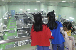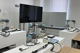 協働ロボット操作体験として、製造現場で人と一緒に作業ができるロボットのプログラミングを体験。ACSソリューションセンター施設の見学。