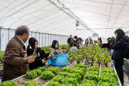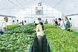 高床式砂栽培施設「トレファーム」栽培・収穫体験。収穫野菜の一部をお持ち帰り。スムージーをご提供。